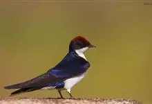 线尾燕,腹部接近纯白色,背部则为深紫色,头部的羽毛是栗色的。