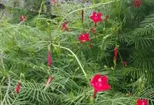 茑萝是旋花科番薯属属一年生柔弱缠绕草本植物。叶卵形或长圆形,羽状深裂至中脉,基部常具假托叶;花序腋生,由少数花组成聚伞花序,花直立,花柄较花萼长,在果时增厚成棒状;萼片绿色,椭圆形至长圆状匙形,…全部>>