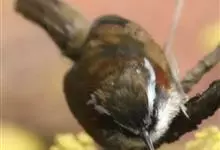 家麻雀:共有13个亚种。是小型鸟类,体长14-16厘米。背栗红色具黑色纵纹,两侧具皮黄色纵纹;颏、喉和上胸黑色,脸颊白色,其余下体白色,翅上具白色带斑。雄鸟与树麻雀的区别在顶冠及尾上覆羽灰色,耳无黑…全部>>