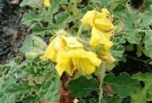 黄花刺茄是茄科,茄属一年生草本植物。直根系,主根发达,侧根较少,多须根。茎直立,基部稍木质化,株型类似灌木。高可达70厘米。叶互生,叶柄长0.5-5厘米,密被刺及星状毛;叶片卵形或椭圆形,…全部>>