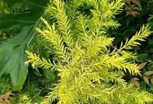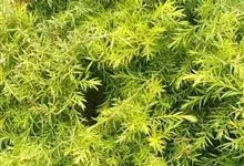 千层金是桃金娘科白千层属植物,常绿乔木。树高可达6-8米,冠幅锥形。主干直立,枝条密集、细长、柔软,嫩枝红色。叶片金黄色,披针形,长2-2.5米,宽0.2厘米左右,具芳香味。穗状花序,花瓣绿白色。果…全部>>