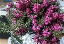 欧石南:是杜鹃花目、杜鹃花科、欧石南属多年生常绿灌木类植物,有100多个培育品种。大多数品种都是高度为20-150厘米的小灌木。种子很小。细小针状的绿色叶子长2-15毫米。花朵有腋生,…全部>>