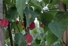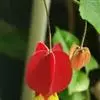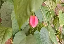 红萼苘麻是锦葵科、苘麻属常绿软木质灌木,叶绿色,长5-10厘米,心形,叶端尖,叶缘有钝锯齿,有时分裂,有细细的叶柄;叶互生,掌状叶脉;花单生于叶腋,具长梗,下垂;花萼红色,半套着大约4厘米长的花瓣,…全部>>
