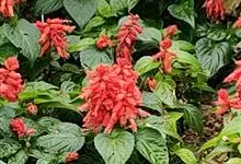 一串红,又称爆仗红、象牙红,为唇形科鼠尾草属植物。花序修长,色红鲜艳,花期又长,适应性强,为中国城市和园林中最普遍栽培的草本花卉。原产巴西、南美洲。喜温暖和阳光充足环境。不耐寒,耐半阴,忌霜雪和高温,…全部>>