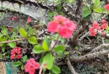 虎刺梅:别称铁海棠,是蔓生灌木植物。茎多分枝,长60-100厘米,直径5-10毫米,具纵棱,密生硬而尖的锥状刺,刺长1-1.5厘米,直径0.5-1.0 毫米,常呈3-5列排列于棱脊上,呈旋转。叶互生…全部>>