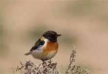黑喉石鵖,雀形目鹟科石鵖属小型鸣禽,俗名谷尾鸟、黑喉石。其体色为黑褐色。雄鸟头部、背部、两翼及尾黑色,颈侧及翼上具白斑,胸部和腹侧红棕色,腰及尾下覆羽白色。雌鸟体色为褐色,上体具深色纵纹,胸部染棕色,…全部>>