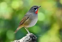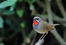 红点颏:是鸟纲、鹟科的鸣禽。又名西伯利亚歌鸲。体长14-17厘米,体重16-27克。雄鸟头部、上体主要为橄榄褐色。眉纹白色。颏部、喉部红色,周围有黑色狭纹。胸部灰色,腹部白色。雌鸟颏部、喉部不呈赤红色,…全部>>