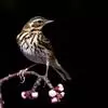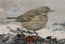 粉红胸鹨:属小型鸣禽,体重18-27克,体长13-18厘米。非繁殖期粉皮黄色的粗眉线明显,背灰而具黑色粗纵纹,胸及两胁具浓密的黑色点斑或纵纹。虹膜暗褐色;嘴黑褐色;下嘴基部色较淡,呈角褐色;跗蹠和趾…全部>>
