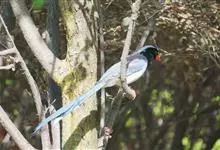 红嘴蓝鹊,别名山鹊、长尾鹊,是鸦科蓝鹊属的一种观赏性较强的大型鸣禽。该物种为体长54~65cm,头、颈、喉和胸黑色,头顶至后颈有一块白色至淡蓝白色或紫灰色块斑,其余上体紫蓝灰色或淡蓝灰褐色。尾长呈凸状,…全部>>