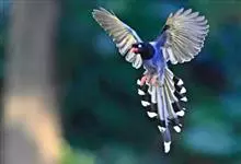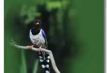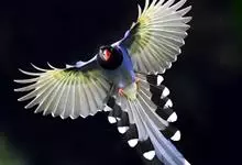 台湾蓝鹊:体长64至65厘米,翼展18至21厘米,尾长约40厘米,尾羽长占了总体长的三分之二。头、脸、颈、喉、胸都是黑色,黄色的眼珠包围黑色的瞳孔,鲜红色的鸟喙、双脚,…全部>>