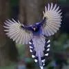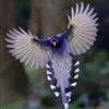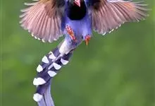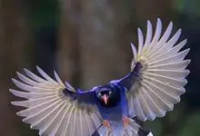 台湾蓝鹊:体长64至65厘米,翼展18至21厘米,尾长约40厘米,尾羽长占了总体长的三分之二。头、脸、颈、喉、胸都是黑色,黄色的眼珠包围黑色的瞳孔,鲜红色的鸟喙、双脚,…全部>>