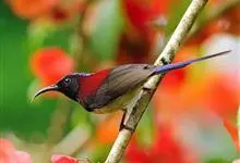 红头咬鹃: 体大,体长约33厘米,体重75-110克。头、颈暗绯红色;背、肩锈褐色。两翅黑色,翅上覆羽和内侧飞羽密被白色细虫蠹斑纹,初级飞羽黑色,外侧具白色羽缘;腰和尾上覆羽较多锈色。中央尾羽深栗色,…全部>>