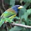 黑眉拟啄木鸟,为须䴕科、拟啄木鸟属的小型鸟类,体长20-25厘米,外形和金喉拟啄木鸟非常相似,但具粗著的黑色眉纹,头侧和耳覆羽以及下喉蓝色而不为银灰色,前颈两侧各有一块鲜红色斑。全部>>