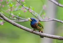 金喉拟啄木鸟,是须鴷科、拟啄木鸟属的鸟类。金喉拟啄木鸟为小型鸟类,体长19-24厘米。额深红色,头顶金黄色,后枕具一大块深红色斑,耳羽和头侧银灰色,上体草绿色,颏和上喉金黄色,下喉淡银灰色,…全部>>