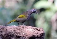 大噪鹛:中型鸟类,体长32-36厘米。额至头顶黑褐色,背栗褐色满杂以白色斑点,斑点前缘或四周还围有黑色。初级覆羽、大覆羽和初级飞羽具白色端斑。尾特长,均具黑色亚端斑和白色端斑。颏、喉棕褐色,…全部>>