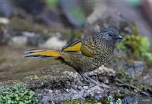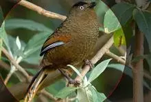 蓝翅噪鹛:噪鹛科、彩翼噪鹛属动物。中型鸟类,体长22-25厘米。上体棕橄榄褐色密被黑色鳞状斑,眼蓝白色,眼上有一长而宽阔的黑色眉纹,从眼先直到颈侧。下体棕褐色被黑色鳞状斑;尾上和尾上覆羽栗色,…全部>>