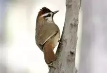 白颊噪鹛是雀形目噪鹛科噪鹛属鸟类,又称土画眉、小画眉、小噪鹃。成鸟额至头顶栗褐色,长眉纹、眼先和颊纹棕白色,眼后至耳羽深褐色,…全部>>