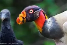 王鹫:是美洲鹫科、王鹫属大型食腐鸟类。体型很大,体长约78厘米。头部裸露,色彩极鲜艳醒目。嗉囊发达。尾短。它的头部及颈部没有羽毛,皮肤颜色有异,包括黄色、橙色、蓝色、紫色及红色。…全部>>