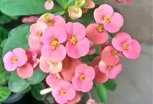 虎刺梅:别称铁海棠,是蔓生灌木植物。茎多分枝,长60-100厘米,直径5-10毫米,具纵棱,密生硬而尖的锥状刺,刺长1-1.5厘米,直径0.5-1.0 毫米,常呈3-5列排列于棱脊上,呈旋转。叶互生…全部>>