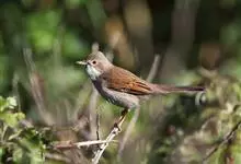 白喉林莺:体长10-13厘米,是一种类体型略小的莺鸟。喉白,上体灰褐或沙褐色,头顶较灰,贯眼纹黑褐或暗褐色。下体污白。耳羽深黑灰,胸侧及两胁沾皮黄色、褐色或淡粉红色。外侧尾羽羽缘白色。…全部>>