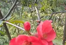 贴梗海棠Nakai)是蔷薇科、木瓜海棠属植物。落叶灌木,高达2米,枝条直立开展,有刺。叶片卵形至椭圆形,稀长椭圆形,长3-9厘米,宽1.5-5厘米。花先叶开放,3-5朵簇生于二年生老枝上。…全部>>