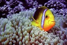 小丑鱼是鲈形目雀鲷科小丑鱼属鱼类的统称。体长仅5—6厘米。身体色彩艳丽,多为红色、橘红色;除透明的胸鳍与软背鳍鳍条外部,其余鳍均为黑色。体形怪异,体色多变,通常体侧有白色条纹。…全部>>