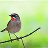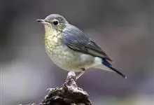 红尾歌鸲:体长13-15厘米。上体橄榄褐色。尾羽棕栗色,眼先和颊黄褐色,眼周淡黄褐色。下体颏、喉污灰白色,微沾皮黄色,胸部具橄榄色扇贝形纹,两胁橄榄灰白色,腹部和尾下覆羽与颏、喉同。尾部棕色。…全部>>