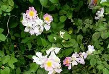 粉团蔷薇是蔷薇科、蔷薇属的攀援灌木,小枝圆柱形,通常无毛,小叶倒卵形、长圆形或卵形,边缘有尖锐单锯齿,上面无毛,下面有柔毛;花多朵,排成圆锥状花序,花直径1.5-2厘米,萼片披针形,花瓣宽倒卵形,…全部>>