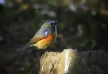 红胁蓝尾鸲俗名:蓝点冈子、蓝尾巴根子、蓝尾杰、蓝尾欧鸲。体型略小而喉白的鸲。特征为橘黄色两胁与白色腹部及臀成对比。雄鸟上体蓝色,眉纹白;亚成鸟及雌鸟褐色,尾蓝。…全部>>