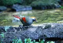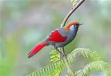 赤尾噪鹛中型鸟类,体长24~28厘米。头顶至后颈红棕色,两翅和尾鲜红色,眼先、眉纹、颊、颏和喉黑色,眼后有一灰色块斑。其余上下体羽大都暗灰或橄榄灰色。特征极明显,特别是通过鲜红色的头顶、翅和尾。…全部>>