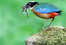 蓝翅八色鸫是雀形目八色鸫科的鸟类。体长17-20厘米,体重类约48-70克,体型圆胖,尾短,腿长,以身体具有红、绿、蓝、白、黑、黄、褐、栗等鲜艳夺目,丰富艳丽的色彩而得名,是很有观赏价值的鸟类。主要…全部>>