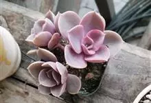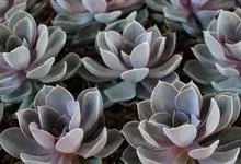 紫珍珠是景天科石莲花属的多年生肉质草本植物。植株中小型;叶片肉质,匙形,呈莲座状紧密排列;叶片粉紫色,叶缘呈粉白色,光照充足时颜色亮丽,不足时叶色会呈现深绿色或灰绿色,叶面光滑,被轻微白粉,…全部>>