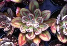 红艳辉又名红辉炎,景天科拟石莲花属的多肉植物。是锦晃星的杂交品种。株型呈莲座状,秋天会变红,很美丽的品种。栽培较为普遍,其肥厚、多肉的叶片布满了细短的白色绒毛,叶缘顶端的红色鲜艳夺目。 全部>>
