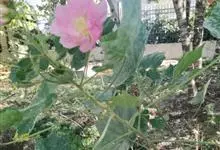 木芙蓉,锦葵科木槿属落叶灌木或小乔木。小枝上有细绒毛;叶片为卵状心形,托叶为披针形,常早落;花单生,花萼为钟形,花冠初为白色或淡红色,后逐渐变为深红色;果实为扁球形,有淡黄色的毛附着。花期8到10月。…全部>>