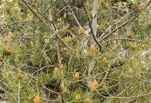 华山松是松科松属的乔木。华山松的幼树树皮为灰绿色或淡灰色,平滑,老则呈灰色,裂成厚块片固着于树干上,或脱落;枝条平展,一年生枝绿色或灰绿色,干后褐色,冬芽近圆柱形,褐色;针叶边缘具细锯齿,…全部>>