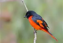 灰喉山椒鸟:共有8个亚种。体长18-22厘米。雄鸟头部和背亮黑色,腰、尾上覆羽和下体朱红色,翅黑色具一大一小的两道朱红色翼斑。中央尾羽黑色,外侧尾羽基部黑色,端部红色。…全部>>