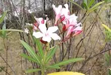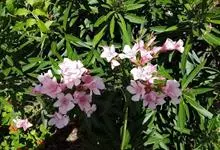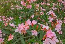 夹竹桃,又名红花夹竹桃、欧洲夹竹桃,是夹竹桃科夹竹桃属的一种常绿直立大灌木,枝条灰绿色,含水液。叶披针形,3叶轮生。聚伞花序顶生,花冠粉红至深红色,花冠漏斗状,有特殊香味。蓇葖果,圆柱形。种子长圆形,…全部>>