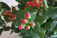 红果金丝桃,园艺栽培品种,属于被子植物门木兰纲金虎尾目金丝桃科金丝桃属。学名:Hypericum × inodorum ‘Excellent Flair’常绿灌木,高1.2米。单叶对生,无柄,椭圆形,…全部>>