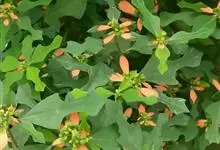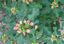 猩猩草:常绿或半常绿灌木,盆栽时株高0.5米-2米,在亚热带地区可长到6米以上。茎直立而光滑,单叶互生,卵状椭圆形至阔披针形,具不规则的深缺刻。长10-15厘米。花小,有蜜腺,排列成密集的伞房花序。…全部>>