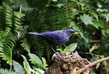 紫啸鸫是雀形目鹟科啸鸫属鸟类,又称黑雀儿,山鸣鸡、乌精。成鸟眼先及颏绒黑色;前额、头顶至背及肩羽和颈侧呈深紫蓝色,羽端具较密集的亮蓝色点斑;腰至尾上覆羽的深紫蓝色较暗而杂黑褐色,…全部>>