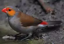 橙颊梅花雀体长约10厘米,头部灰色,两侧有大块橙色区域,嘴基及眼下方有黑纹,两条黑纹间呈白色,颊部有橙红色块斑,喙为红色至橙红色,背部及翼为褐色,腰为鲜红色,身体腹面淡灰色,腹部白色至皮黄色,…全部>>