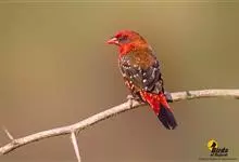 红梅花雀小型鸟类,体长9-10厘米。雄鸟通体朱红色,背、肩、胸等满布白色小斑点,两翅和尾黑褐色均具白色端斑,嘴红色,脚蜡黄色。雌鸟上体淡褐色或赭褐色,翅上中覆羽、大覆羽和内侧飞羽末端具白色斑点,…全部>>