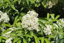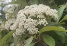 石楠 Kalkman),是蔷薇科石楠属的常绿乔木,高5~12米,株型紧凑,树冠圆球形。树枝为褐灰色;鳞片为褐色,没有毛;叶片革质,长椭圆至侧卵状椭圆形,有锯齿,新叶红色光亮。复伞房花序,白色小花,…全部>>