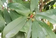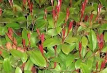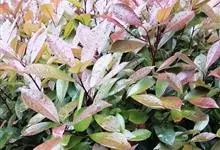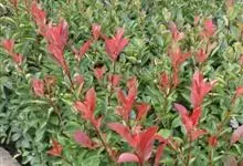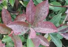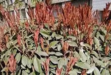 红叶石楠 是蔷薇科,石楠属杂交种,为常绿小乔木或灌木,乔木高可达5米、灌木高可达2米。叶片革质,长圆形至倒卵状、披针形,叶端渐尖,叶基楔形,叶缘有带腺的锯齿,花多而密,复伞房花序,花白色,梨果黄红色,…全部>>