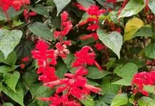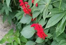 一串红,又称爆仗红、象牙红,为唇形科鼠尾草属植物。花序修长,色红鲜艳,花期又长,适应性强,为中国城市和园林中最普遍栽培的草本花卉。原产巴西、南美洲。喜温暖和阳光充足环境。不耐寒,耐半阴,忌霜雪和高温,…全部>>