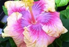 重瓣朱槿是锦葵科、木槿属常绿灌木植物;小枝疏被星状柔毛单叶互生,卵形或卵状披针形,基部圆形;叶柄长;托叶早落;花重瓣,较朱槿为大;花萼小,钟形,基部具有苞片多枚;花瓣多枚排列成彩球状,…全部>>