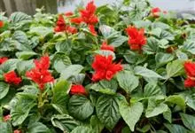 一串红,又称爆仗红、象牙红,为唇形科鼠尾草属植物。花序修长,色红鲜艳,花期又长,适应性强,为中国城市和园林中最普遍栽培的草本花卉。原产巴西、南美洲。喜温暖和阳光充足环境。不耐寒,耐半阴,忌霜雪和高温,…全部>>