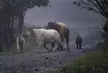 羚牛,偶蹄目牛科羚牛属哺乳动物,俗称扭角羚、野山牛、盘羊。其体形粗壮。尾短。吻鼻部隆起且裸露。前额隆起,毛短而蓬松。角基粗,由头顶长出后先向上升起,又突然翻转,靠近头部,复向外伸,然后又向后弯转,…全部>>