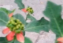 猩猩草:常绿或半常绿灌木,盆栽时株高0.5米-2米,在亚热带地区可长到6米以上。茎直立而光滑,单叶互生,卵状椭圆形至阔披针形,具不规则的深缺刻。长10-15厘米。花小,有蜜腺,排列成密集的伞房花序。…全部>>