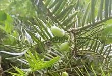 三尖杉是红豆杉科三尖杉属乔木。株高达20米;树皮褐色或红褐色,裂成片状脱落,树冠广圆形;枝条较细长,叶排成两列,披针状线形,基部楔形或宽楔形;总花梗粗,种子椭圆状卵形或近圆形,假种皮成熟时紫或红紫色。…全部>>